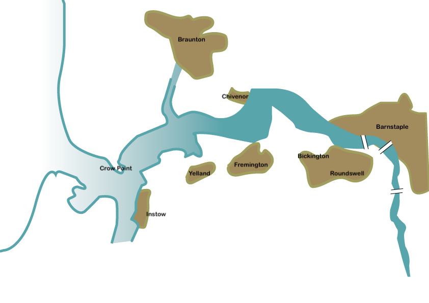 The River Taw rises high on the slopes of Dartmoor and runs through the north Devon countryside and Barnstaple before entering the Taw / Torridge estuary that flows into Bideford Bay and the Bristol Channel.