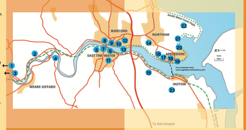 Pick up a map at Tourist Information The Burton at Bideford and other outlets or link here