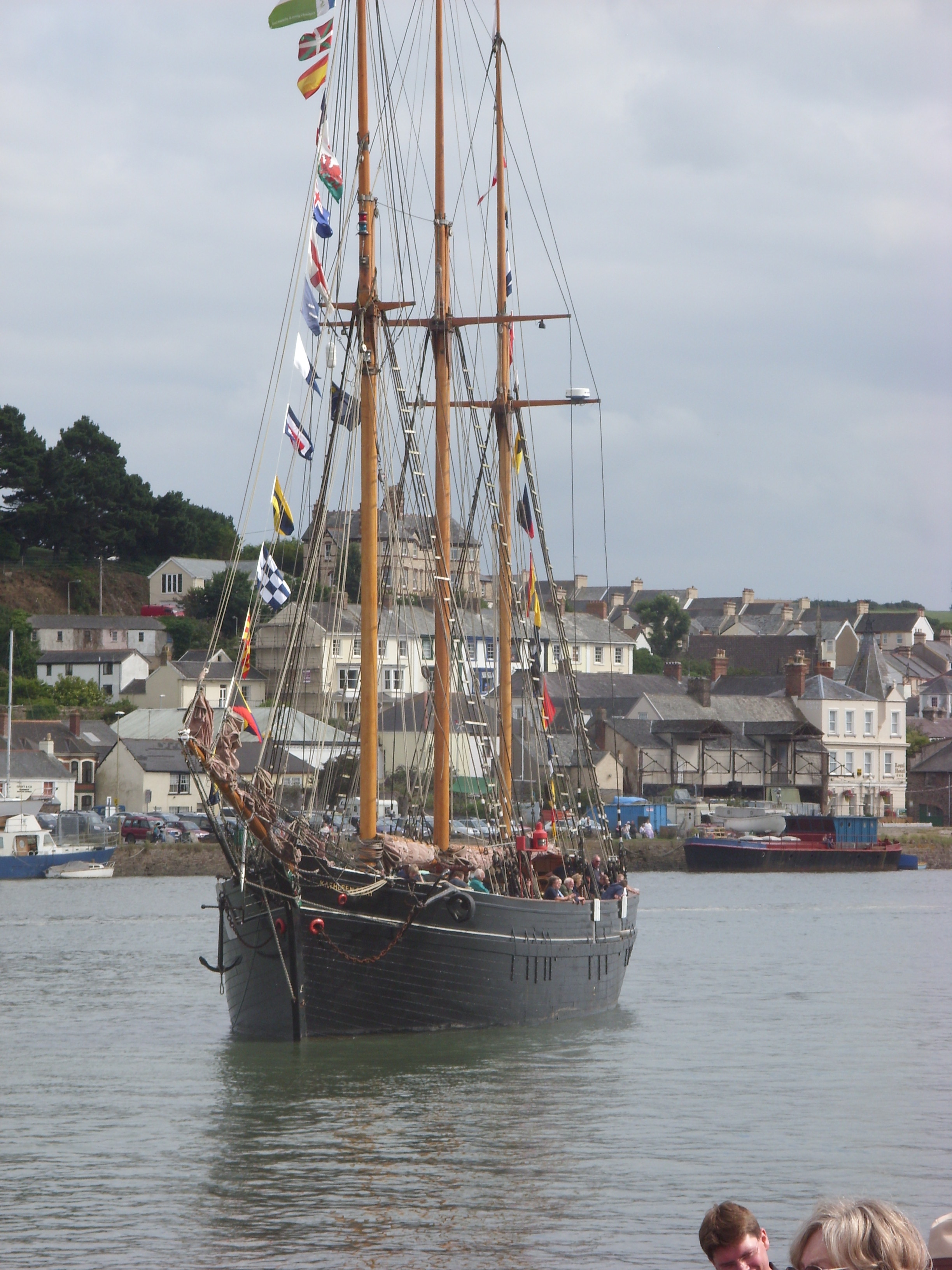The Bideford registered schooner Kathleen & May was purchased by Captain Tommy Jewel of Appledore in the 1930s when she was refitted and a 80 bhp Beardmore engine was installed. Working in the coal trade, mainly to Ireland, in 1943, armed with a Lewis Gun and a rifle, she made her first voyage with clay from Fremington to Carrigaline Pottery in Co. Cork, Ireland – a trade in which she became well known. She is currently (2025) moored in Gloucester.