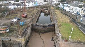 Just downstream from the Navantia shipyard and New Quay is Middle Dock (sometimes referred to as Benson’s Yard). A new Clean Maritime Innovation Centre, to research and develop green propulsion methods for ships, is being built here. In WW II P.K.Harris used this site for building launches.