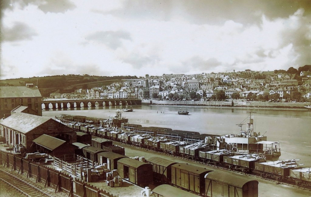 The railway freight yard on Railway Wharf at East the Water (now Ethelwynne Brown Close) was an important logistics point for goods coming into and out of Bideford and the Torridge area. In March 1944 a convoy of 8 landing craft were pictured at Railway Wharf en route from Scotland to Dartmouth in preparation for D-Day.
