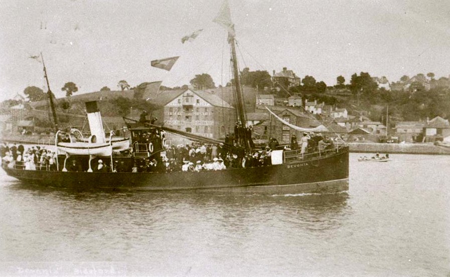 The steamer Devonia, based from Brunswick Wharf, East the Water, was one of these vessels and an early casualty of the war. Devonia, owned after 1938 by A. J. Smith Ltd of Bristol, was a coasting steamer transporting cargoes as varied as coal from South Wales, cattle from Lundy and in the summer tourists on sixpenny excursions down the river and ‘Over Bideford Bar’. The Devonia sank off Barry, South Wales in October 1940 when she struck a mine. There was one survivor, William Turner from East the Water.