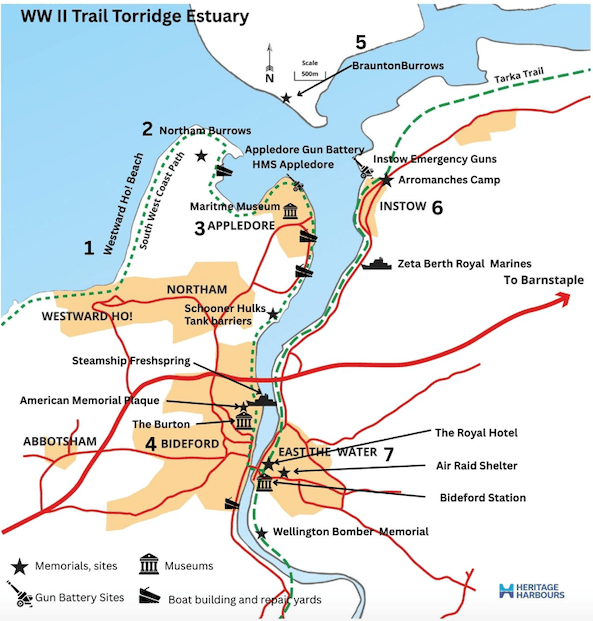 North Devon may sometimes seem to be a sleepy part of the country but it has more than its share of war secrets, and ‘special operations’. Visiting the sites on this trail you can discover how the Torridge Estuary helped ensure the success of the D Day landings. This is part of the Heritage Harbour ‘Transformed by War 1939-1945’ National Trail.