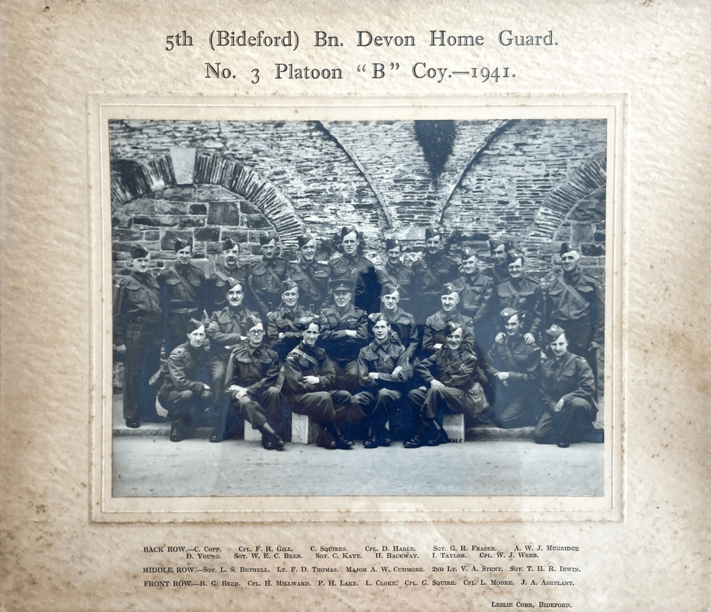 Home Guard and Auxiliary Units : 5th (Bideford) Battalion, Devon Home Guard was formed in May 1940 and affiliated to the Devonshire Regiment whose cap badge they wore. It was made up of platoons of men in reserved occupations and those too old or young to serve in the armed services. They wore army style uniform and were equipped with a few rifles.